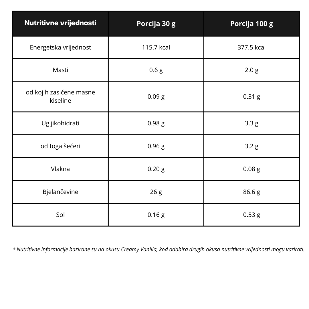 100% Smart Whey Isolate predstavlja najčistejšo obliko sirotkinih beljakovin, idealno za vse, ki želijo zgraditi mišično maso, pospešiti regeneracijo in izboljšati športne zmogljivosti. Vsebuje do 90 % čistih beljakovin na porcijo, zahvaljujoč naprednemu postopku mikrofiltracije pa se izolat hitreje absorbira in vsebuje minimalne količine maščob, ogljikovih hidratov in laktoze. Z odličnim mlečnim okusom in formulo brez sladkorja, aspartama in GSO ta izdelek prinaša vrhunsko kakovost in maksimalno vrednost za vaš denar.