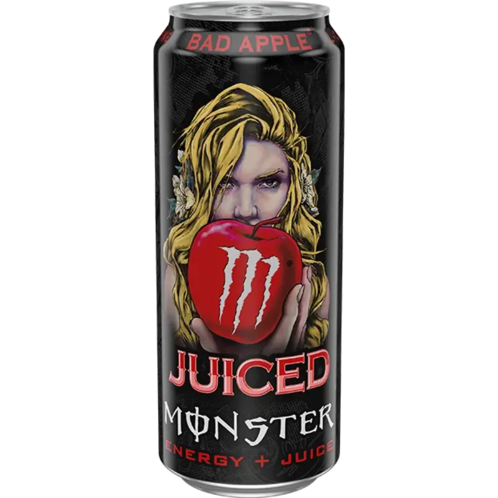 Uživajte v čisti kombinaciji energijskega učinka in sadne svežine — Bad Apple prinaša okus sočnega jabolka Fuji, pravi naravni sok in značilno energijo Monster. S 160 mg kofeina na pločevinko ta pijača zagotavlja močan zagon za fokus in energijo.