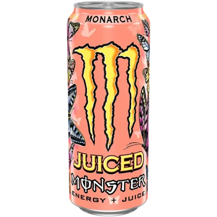 Juiced Monster Monarch v 500 ml pločevinki je gazirana energijska pijača s tavrinom, L-karnitinom, inozitolom in vitamini skupine B. Odlikuje jo lahek in nežen okus z notami breskve in nektarine. Juiced Monster prinaša poln sadni okus in vsebuje 160 mg kofeina. Postrezite dobro ohlajeno za maksimalno osvežitev.